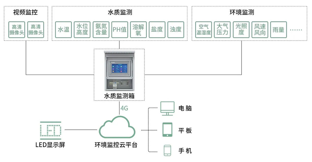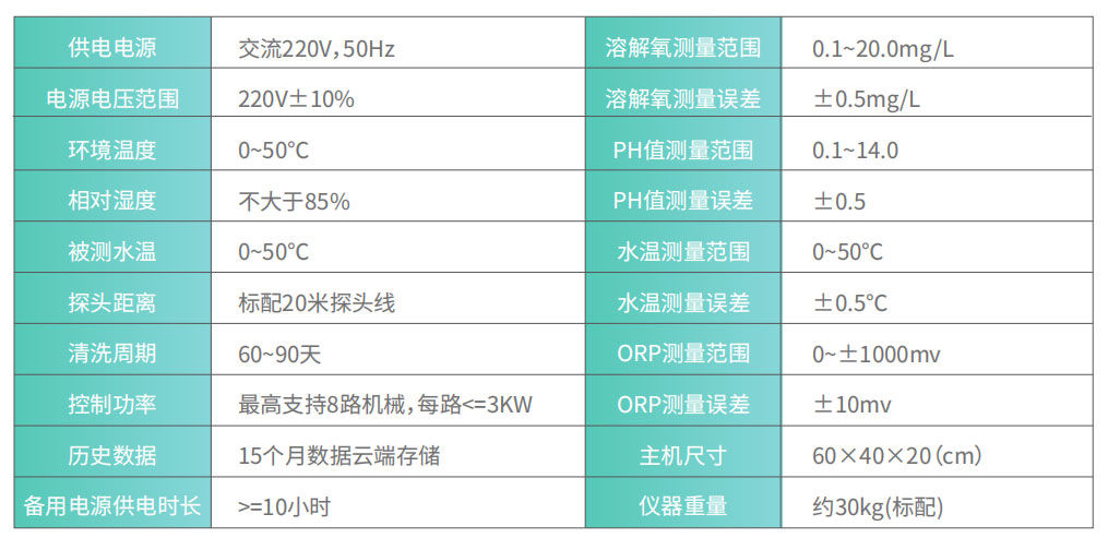 PH传感器,溶解氧传感器,温度传感器,盐度传感器。(其他参数可自行选配,详细咨询销售人员)通过这些传感器可以实时监测水质的各种信息。