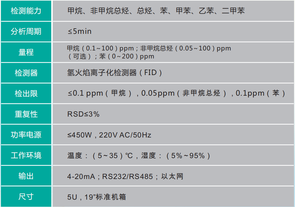 Ø 可测取多种污染源因子,高灵敏度检测器,低检出限,总烃检出限可低至20ppb(以碳计);