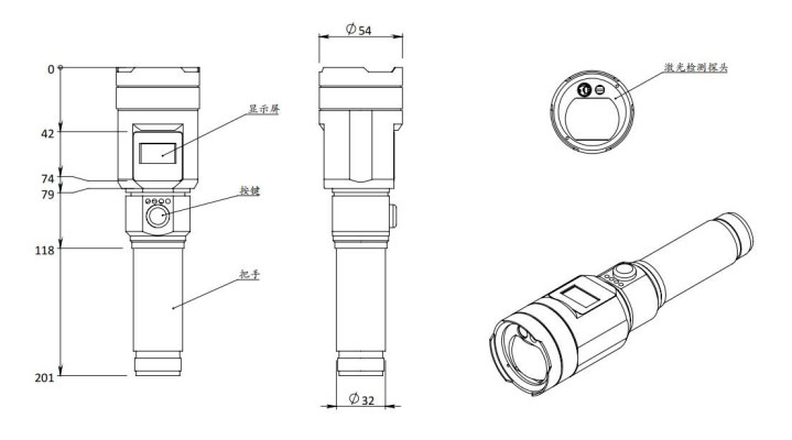 备注:设备使用的测试激光为不可见光,对人眼睛没有伤害,指示绿光为可见光,请不要直视。
