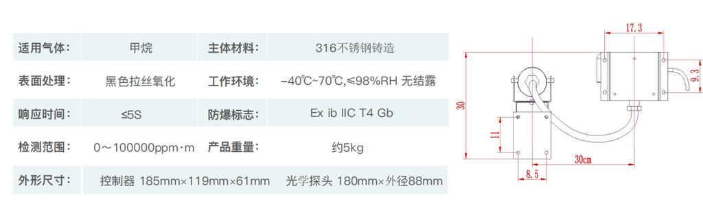 √对甲烷气体具有高度选择性,不受其他气体、水蒸气、粉尘等干扰;