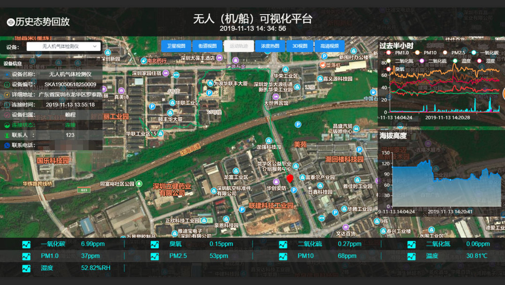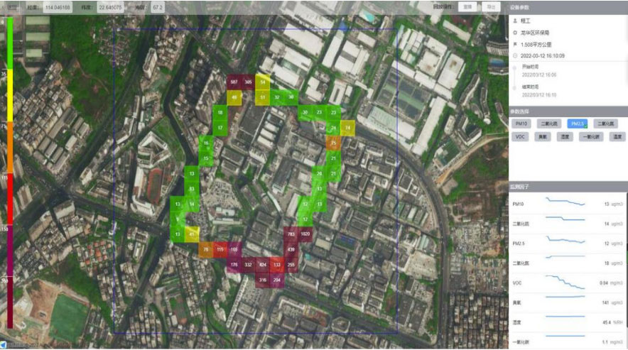 • 采集的数据具有超高的空间分辨率,可精确到每条街、每栋楼、甚至每个高度,且实现了ppb级别的检测精度;